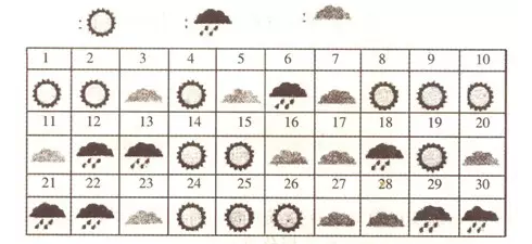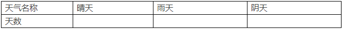 (1) 把晴天、雨天、阴天的天数分别填在下面的统计表中。